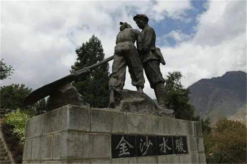 1936年4月25日黄昏,红二、六军团渡江先锋团——四师十二团,由团长黄新廷带领十几名战士,于木瓜寨驾起在海洛塘搞到的小船首渡成功,接着,大队人马点燃火炬开始夜渡。渡过江的红军在沿岸继续找船,总共得到七条船,二十八名水手,还请木匠扎了一些筏子,于是,在东起石鼓西至巨甸的一百多里江面上,二、六军团全面展开了渡江作业。经过四天三夜不停地摆渡,到28日晨,二、六军团一万八千人全部渡过金沙江,将敌人远远甩在了身后。